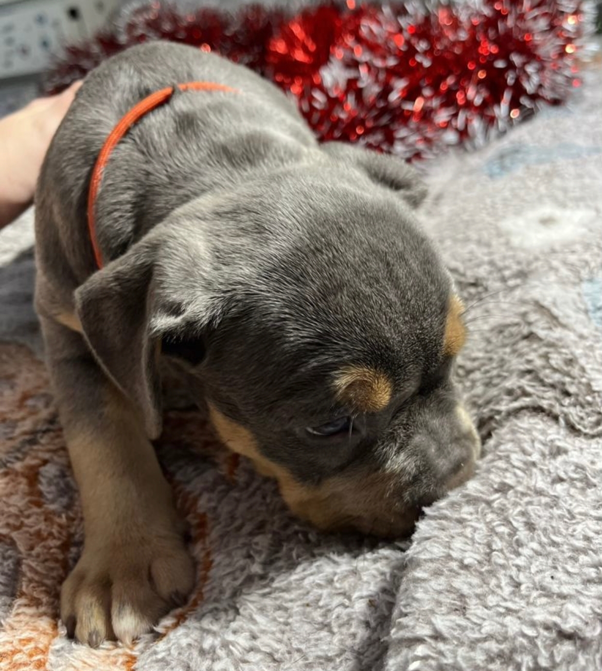 Девочка, голубой триколор. Предполагаемый тип классик.Документы ABKC. Прививки согласно возрасту. Ушки будут купированы .Девочка продаётся на диван.