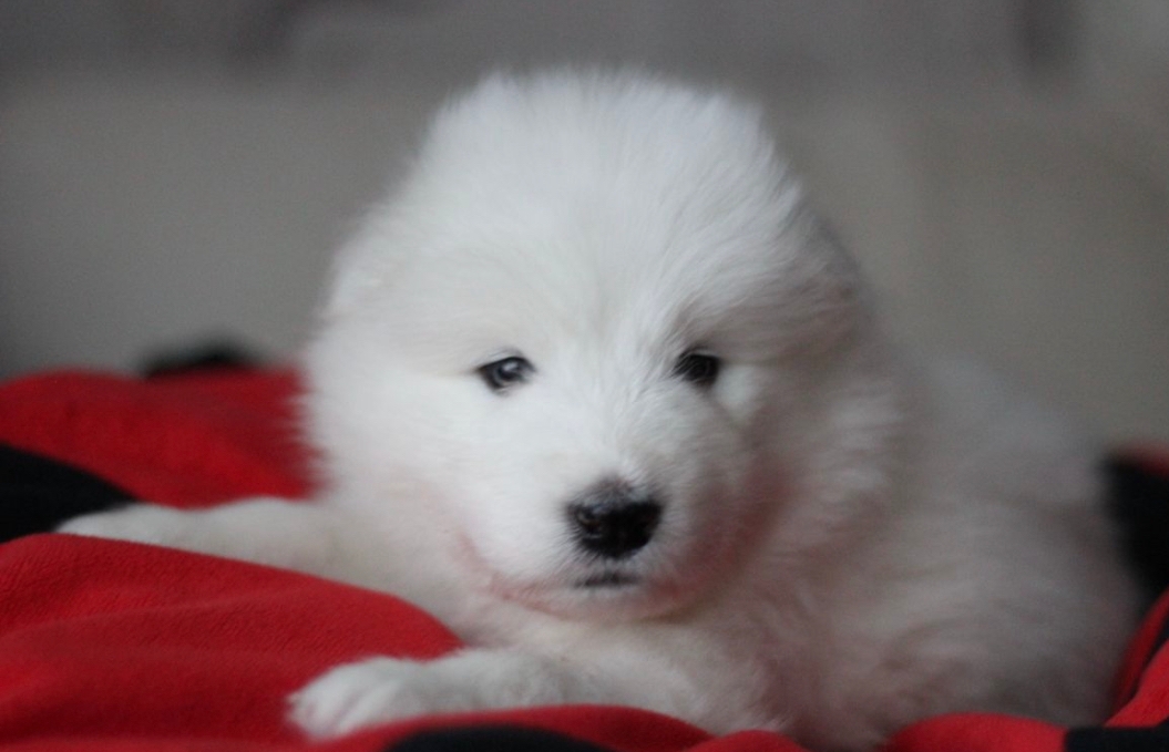 Щенок белоснежный ,без желтизны и веснушек . Документы РКФ, метрика, клеймо, прививки по возрасту.